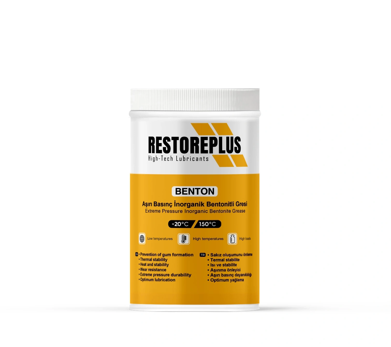 Restoreplus Benton Gres, zorlu çalışma koşullarında üstün performans sunan, aşırı basınca dayanıklı inorganik bentonitli gres olarak geliştirilmiştir. İçeriğindeki yüksek kaliteli mineral baz yağlar ve molibden disülfür (MoS₂) sayesinde, ekipmanlarınızın sürtünme ve aşınmaya karşı mükemmel korunmasını sağlar.