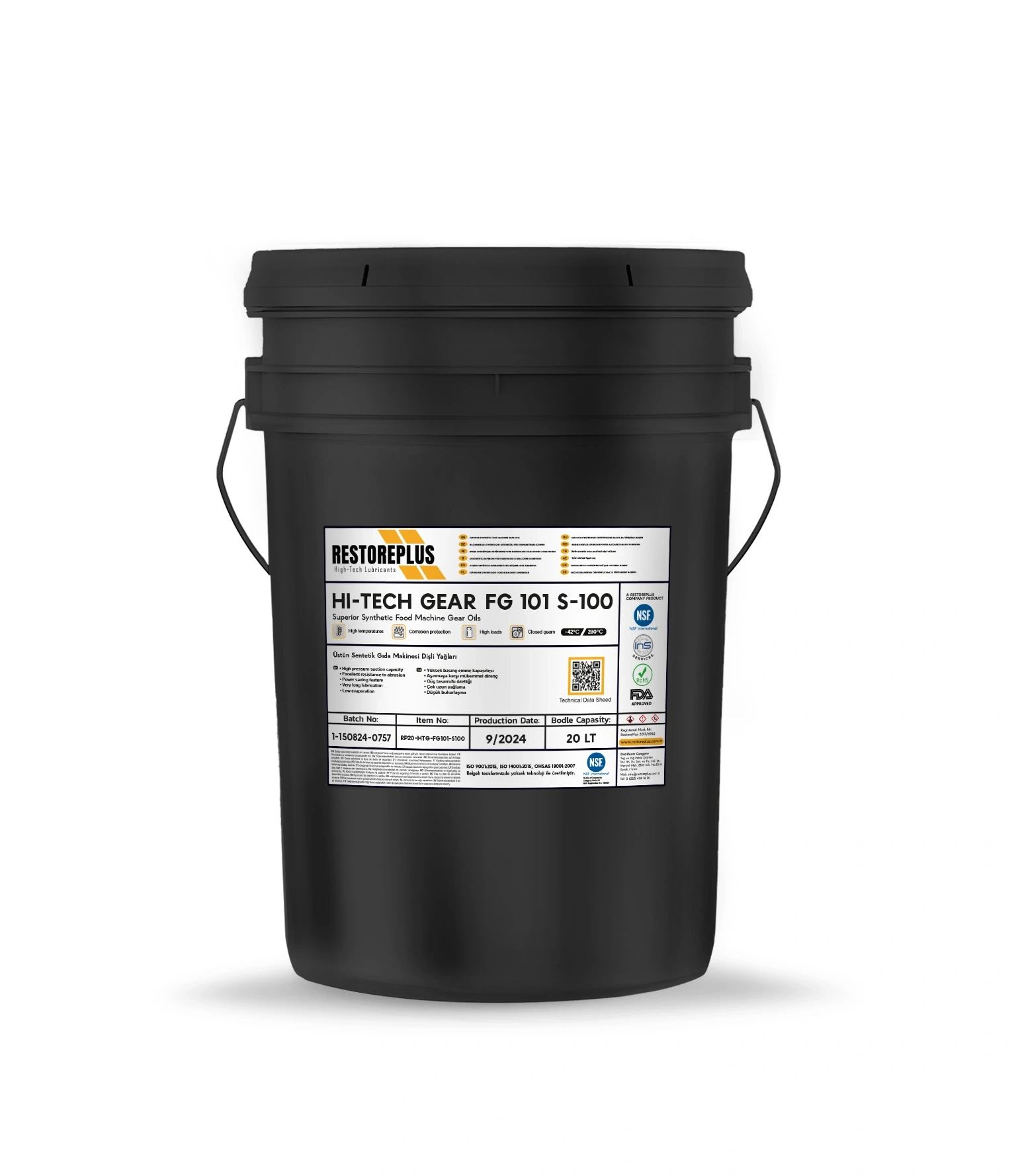 RESTOREPLUS HI-TECH GEAR FG-101 S-100 | Üstün Sentetik Gıda Makinesi Dişli Yağları (20 Litre)