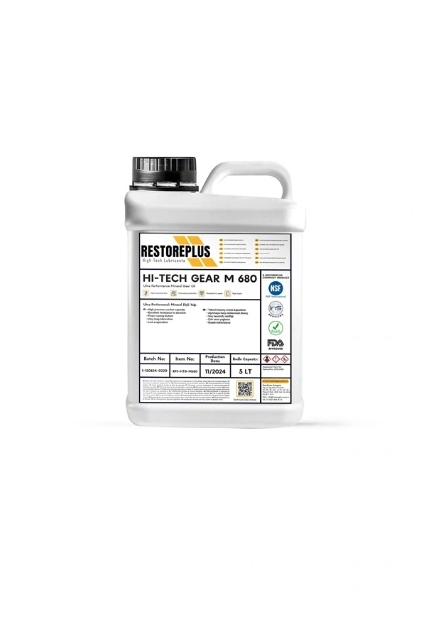Restoreplus HI-TECH GEAR M 680, ağır hizmet koşullarında çalışan dişli ve rulman sistemleri için özel olarak geliştirilmiş, yüksek performanslı EP mineral dişli yağıdır. Aşınma, şok yük ve mikro çukurlaşmalara karşı koruma sağlayarak, makinelerinizin uzun ömürlü, güvenilir ve yüksek verimle çalışmasına katkı sunar.